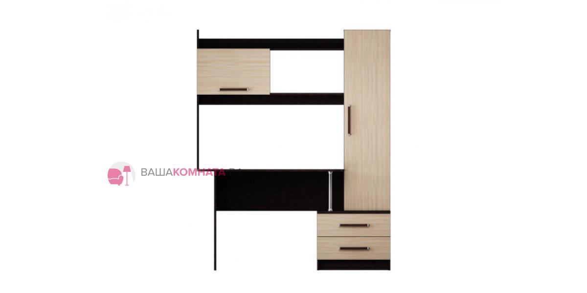 Уголок состоит из рабочего стола размером Д.1100 х В.760 х Г.586 мм., закрытого пенала размером Д.350 х В.1356 х Г.285 мм. , в котором удобно хранить документы и книги. Есть тумба размером Д.548 х В.442 х Г.480 мм. с двумя выдвижными ящиками на роликовых направляющих, благодаря чему процесс открывания ящиков будет проходить без лишних усилий. Дополнительным местом для хранения мелочей является верхняя закрытая полка, а рядом с ней на открытой полке можно расположить выставку достижений школьника. Во избежание нанесения травм, углы стола имеют скруглённые формы, поэтому он безопасен не только для подростков, но и юным пользователям. Данная модель имеет возможность собираться как на левую, так и на правую сторону.